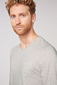 Обязательным элементом повседневного гардероба является  базовая футболка с длинным рукавом от CAMP DAVID. Она изготовлена из органического хлопка, сертифицированного GOT, и имеет мужской V-образный вырез с открытым краем. Нагрудный карман и патч с логотипом спереди на подоле подчеркивают минималистский дизайн. Модель имеет рост 189 см и носит размеры М.