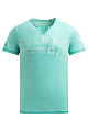 Футболка CAMP DAVID приобретает свой непринужденный винтажный вид благодаря эффекту выгорания ткани, круглому вырезу с необработанными краями и V-образному вырезу. Эффект потертости дополнительно подчеркивается принтами на этикетке в тон.