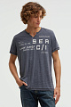 Футболка CAMP DAVID приобретает свой непринужденный винтажный вид благодаря эффекту выгорания ткани, круглому вырезу с необработанными краями и V-образному вырезу. Эффект потертости дополнительно подчеркивается принтами на этикетке в тон.