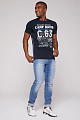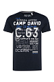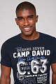 Повседневный образ и детали в морском стиле  сочетаются в футболке CAMP DAVID с круглым вырезом из коллекции Ocean's Seven. Один крупный принт -  спереди, другой поменьше - на верхней части спины. Контрастная строчка на плечах и по бокам завершает дизайн. Международная сертификация изделия: OEKO-TEX® Standard 100. Рост модели 186 см,  носит  M.