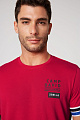 Футболка для спорта и отдыха! Структурированная футболка с круглым вырезом украшена небольшим принтом бренда и нашивкой спереди. Полосатая отделка с логотипом на кромке рукава не останется незамеченной. Цветная вставка по бокам и вертикальный принт этикетки в верхней части спины завершают дизайн. Рост модели 185 см, размер М