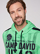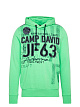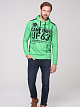 Спереди толстовки с капюшоном простирается большой рисунок с логотипом. Капюшон, плечи и бока украшены контрастными тесьмами. Капюшон также имеет шнурок. Легкая толстовка с капюшоном - классика для спортивного повседневного образа. Модель ростом 187 см носит размер. М.