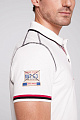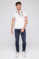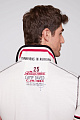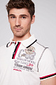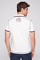 Спортивное, элегантное поло из джерси CAMP DAVID. В нем много интересных деталей. Трикотажный воротник, манжеты рукавов и планка на пуговицах выполнены с контрастной полосой. Аппликации с этикетками украшают левую переднюю часть, правый рукав и верхнюю часть спины. В пер."Герои авиации" напечатаны на нижнем воротнике. Привлекательная строчка завершает дизайн. Рост модели составляет 188 см,  размер М.