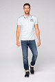 Спортивная классика —  поло из пике от CAMP DAVID. Классное металлическое изображение и полосатая лента на плечах не оставляют без внимания взгляд. Металлизированный прорезиненный принт расположен спереди на уровне груди, еще один сзади параллельно боковому шву. Поло имеет классический трикотажный воротник с принтом изнаночной стороны и  манжеты на рукавах. Рост модели 185 см, размер  М