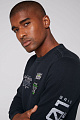 Многие изображения логотипов выполнены на пуловере с круглым вырезом в виде принтов и патчей. Самые большие принты нанесены на спину и рукава. Небольшое изображение и нашивки на лицевой стороне. Ленты и рисунок в рубчик украшают плечевую часть. Свитер из хлопкового трикотажа - отличный вариант для более прохладных дней. Рост модели составляет 186 см, размер M.