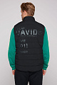 Black is back! Стеганый жилет CAMP DAVID создает  спортивный образ. Он отличается матовым внешним видом и тонирующими резиновыми принтами спереди и сзади. Светоотражающая лента с логотипом подчеркивает боковые карманы-вкладыши. Спортивный стиль дополняется эластичными лентами по низу. Рост модели составляет 188 см, размер - М