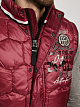 Высококачественный жилет CAMP DAVID для активного отдыха отличается вышивкой в виде сот и наполнителем из пуха и перьев, сертифицированных RDS. Он имеет блестящую отделку, скрытую застежку-молнию спереди  и прикольные аппликации с этикетками спереди и сзади. Особые детали можно найти на воротнике-стойке снаружи, с полосатой лентой и ребристым рисунком внутри. Нарукавные повязки отделаны ребристым кантом в тон.