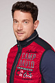 Стеганый жилет CAMP DAVID со вставками из мягкой ткани. Стеганый жилет практичный и модный повседневный предмет первой необходимости. Он выполнен с воротником-стойкой на декоративной молнии и которая есть также на боковых карманах. Аппликации с этикетками на левой передней и задней планке идеально дополняют дизайном образ. Рост модели составляет 188 см,  размер М