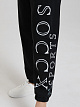 Легкие спортивные брюки от SOCCX отлично подойдут для занятий спортом и дополнят ваш повседневный образ дома. Доолнены большим принтом с логотипом на брючине, и очень удобны в носке.