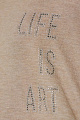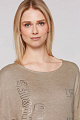 Пестрая, струящаяся рубашка от SOCCX прекрасно подчеркивает фигуру. Специальный двухсторонний материал приятен на ощупь, как шелк, и особенно красиво смотрится с укороченными рукавами. Переднюю часть украшает декоративный текстовый принт, частично выполненный из сверкающих драгоценных камней.