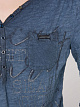 Морские принты с блестками украшают футболку SOCCX  с эффектом складки. Футболка имеет женственный V-образный вырез с декоративной планкой на пуговицах. Ее спортивный вид подчеркивают рукава 3/4 и эластичный подол. Модель ростом 188 см носит размер S.