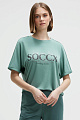 Футболка с логотипом SOCCX из модала создаёт великолепный образ. Специальный материал делает её гладкой и струящейся, а свободный крой обеспечивает комфорт. Рисунок украшен декоративными камнями, а так же имеет спущенные плечи и отворот.