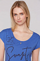 Закат и море! Футболку SOCCX украшает красивый мерцающий текстовый принт. Футболка также привлекает внимание благодаря мини-вырезу на женственном круглом вырезе. Футболка без рукавов со спущенными плечами очень удобна в носке и отлично сочетается с джинсами.