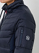 Сочетание материалов придает стеганой куртке SOCCX спортивный  вид. Куртка  выполнена из стеганной ткани, воротник стойка и боковые вставки из стрейча. На левом рукаве имеется небольшой карман на молнии и резиновая нашивка. Принт с логотипом украшает внутреннюю часть воротника, тесьма с логотипом сзади на воротнике и логотип интарсия на манжетах ветровки в рукавах.