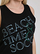 Пляжный сезон! Спортивный топ от SOCCX прекрасно смотрится на фигуре. Спереди декоративный принт. Вырез посередине спинки привлекает внимание. Декольте с круглым вырезом и проймой с отделкой широкой планкой.