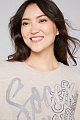Вау! Big Love! Даже после первого прикосновения вы сильно влюбитесь в уютный свитер оверсайз от SOCCX. Его мягкая верхняя часть делает его супер пушистым. Оденув, вы больше не позволите его снять, потому что свитер с блестящими изображениями создает современный образ. У него женственный круглый вырез, более длинная задняя часть с манжетами и боковыми разрезами. Модель имеет рост 177 см и носит размеры S.