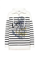 Толстовка SOCCX с воротником-стойкой и полосатым принтом в виде якоря создает повседневный морской стиль. Воротник-стойка застегивается на молнию и затягивается шнурком. Рисунок на лицевой стороне выполнен в виде флокированного принта с цветовым градиентом. Небольшой принт с этикеткой украшает подол сзади.