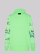 Крупные принты этикеток простираются на передней части и рукавах толстовки SOCCX и делают ее привлекательной для глаз. Особые акценты в работе расставляют фольгированные принты и стразы. Уютно смотрится с высоким воротником и с завязкой, по бокам разрезы, а также вставки по бокам. Модель ростом 174 см носит размер S