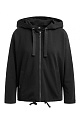 Эта красивая толстовка с капюшоном от SOCCX создаёт элегантный и повседневный образ. Вместо манжет она завязывается на шнурок, а рукава длиной ¾ придают толстовке ещё больше стиля. Надписи в тон акцентируют завязки капюшона и декоративно продолжаются по спине.
